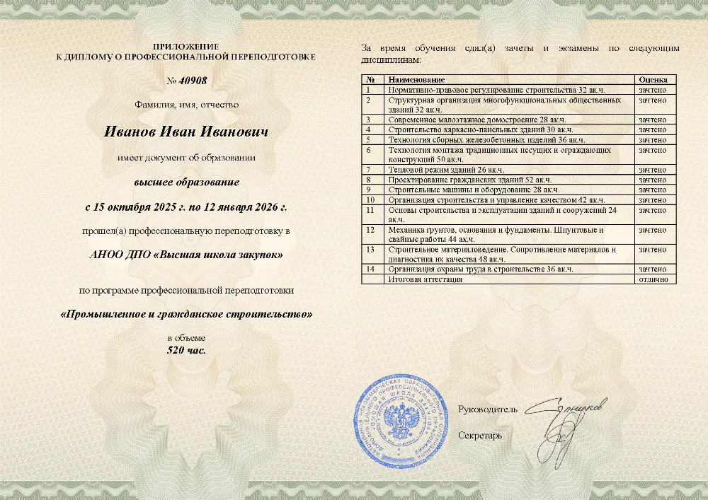 Это полноценная образовательная программа для получения дополнительной квалификации и освоения новой профессии. Для поступления также требуется высшее или среднее профессиональное образование (СПО). Итоговым документом является полноценный диплом о профессиональной переподготовке, который ценится на рынке труда. Программы являются наиболее объемными и начинаются от 250 академических часов, что обеспечивает глубокое погружение в специальность.