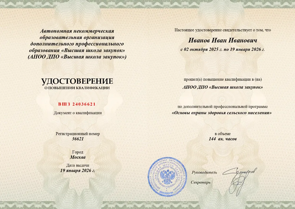 Курс повышения квалификации (144 часа) по основам охраны здоровья в сельской местности. Изучите правовые, организационные и экономические аспекты сельского здравоохранения, санитарно-эпидемиологическое обеспечение и управление качеством медицинской помощи. Онлайн-обучение в во Владимире с итоговой аттестацией.